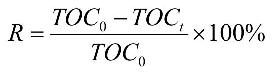 式中:R表示TOC去除率,TOCo為原始水樣TOC值,mg/L;TOCt為絮凝靜置后上清液TOC值,mg/L。